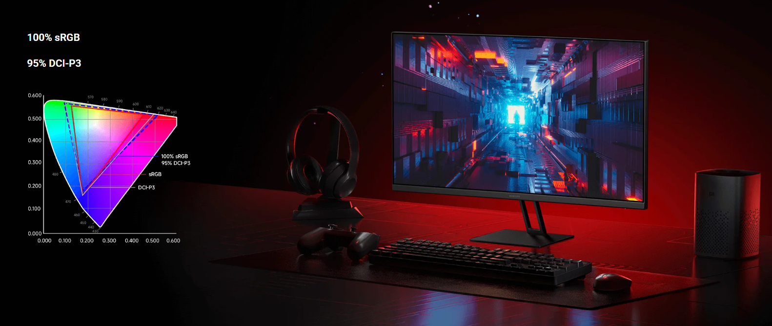 Xiaomi 2K Gaming Monitor G27Qi выполнен в минималистичном стиле с трехсторонним безрамочным дизайном, что делает его отличным выбором для рабочего места или игровой станции. Компактная подставка поддерживает регулировку наклона, позволяя настроить комфортный угол обзора.