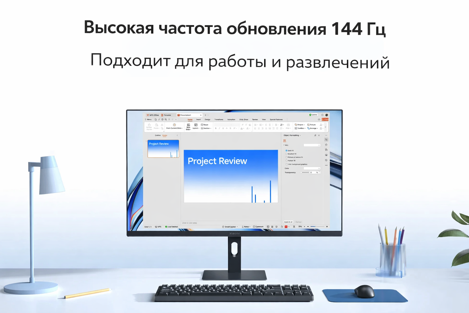Частота обновления 144 Гц делает работу за монитором более комфортной и плавной. Это особенно заметно при прокрутке страниц, работе с интерфейсом, просмотре динамичного контента и в играх. Время отклика 6 мс позволяет модели уверенно справляться с повседневными задачами и мультимедийным использованием.