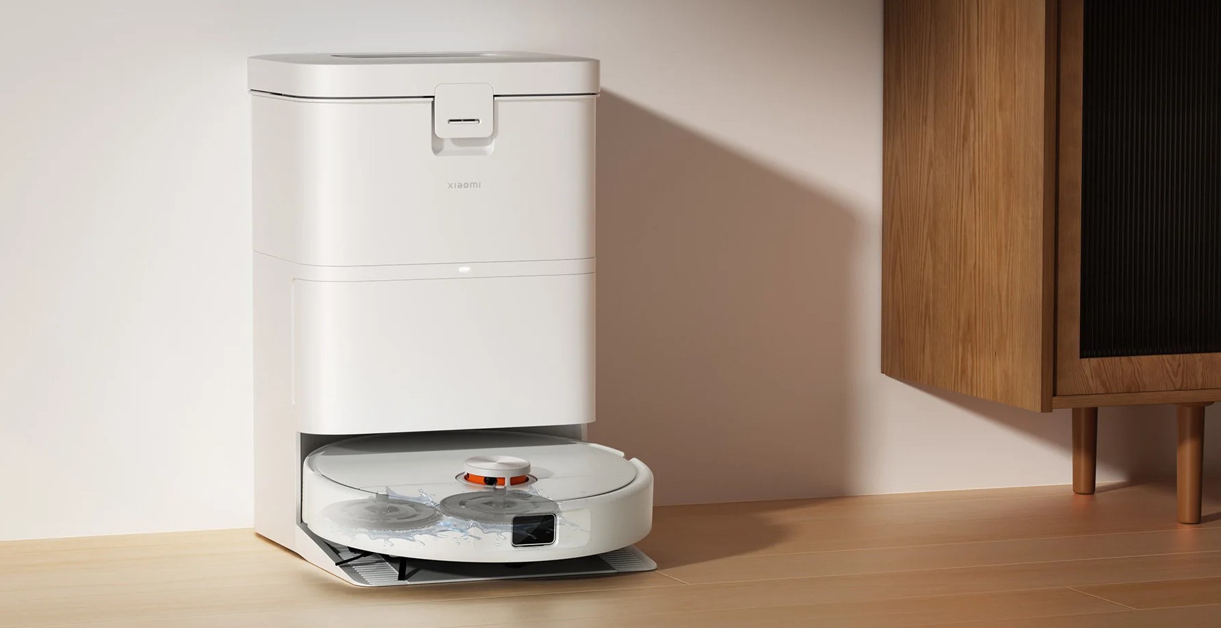 Xiaomi Robot Vacuum H50 выполнен в фирменном минималистичном стиле с сочетанием белого и оранжевого цветов. Компактная высота корпуса позволяет устройству легко убирать под мебелью и в труднодоступных местах.