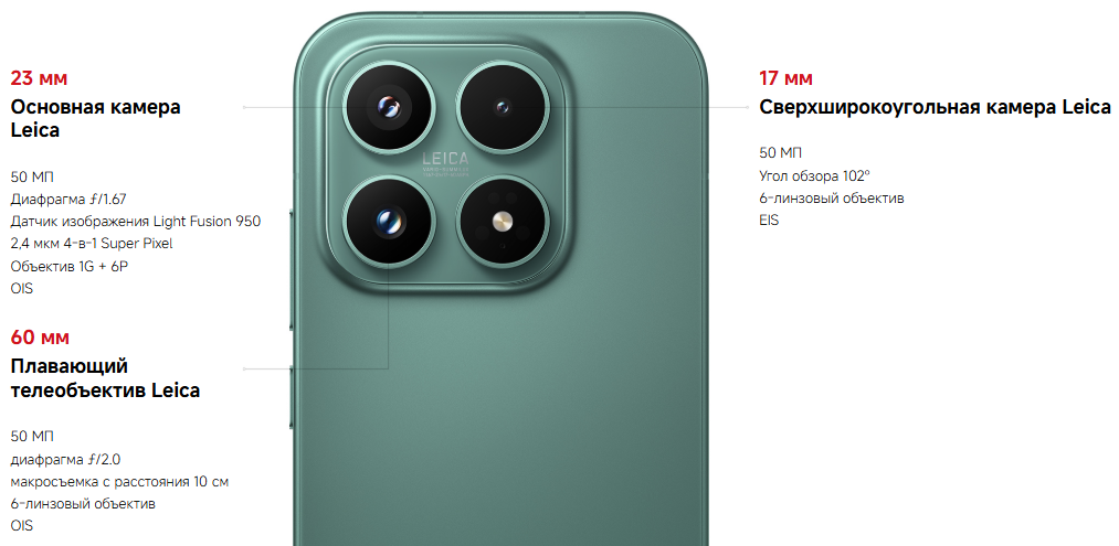 | Количество мегапикселей дополнительной основной камеры | 50 + 50 Мп |