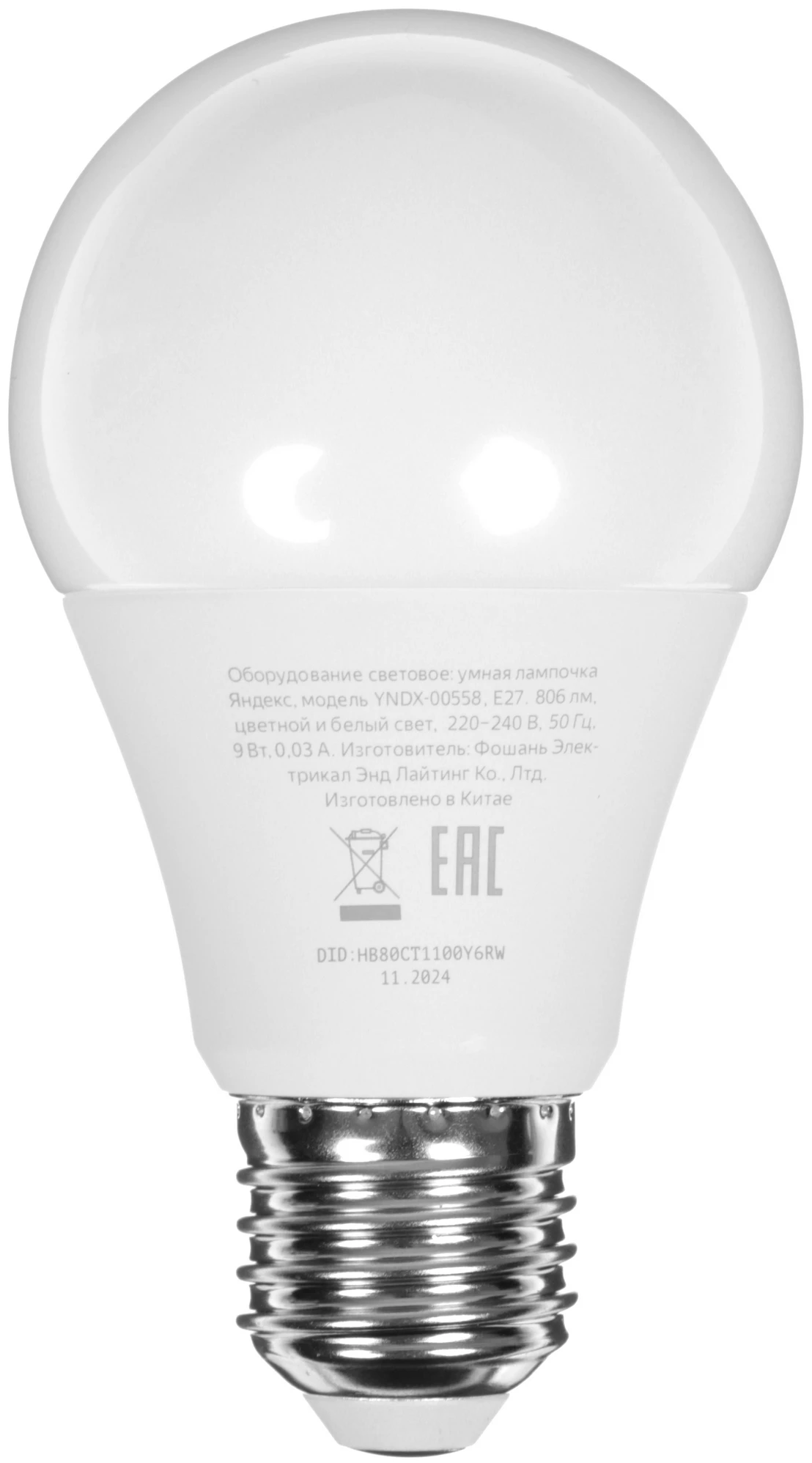 | Дополнительно | мощность 9 Вт, цветовая температура 2700-6500 К, световой поток до 806 лм, цоколь Е27 |