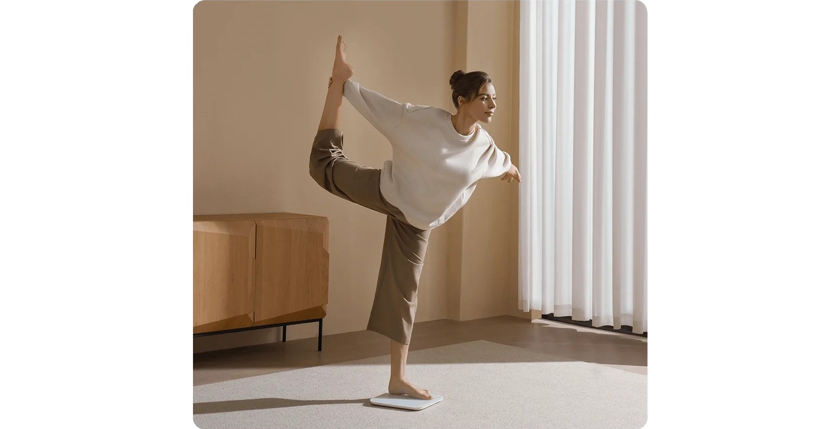 Для дополнительного функционала весы поддерживают тест на равновесие, который можно выполнить, стоя на одной ноге. Это полезно для оценки физической подготовки и улучшения координации. Данные от этого теста также можно просмотреть в приложении MiHome.